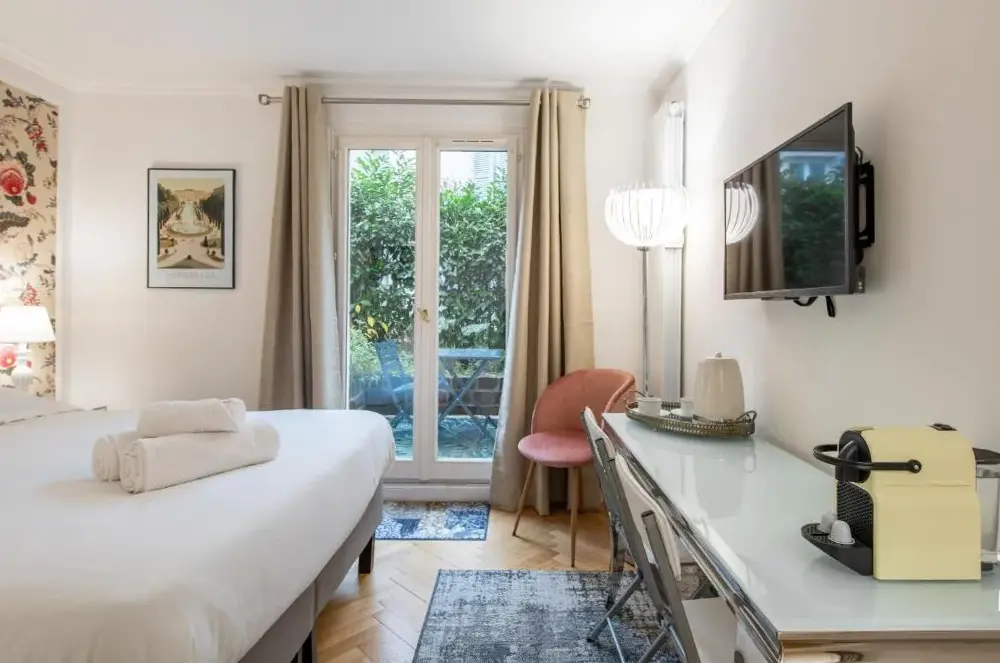 More information about Royal Versailles Dolcevita St LouisGeranimus Versailles Charost offers a compact yet well-equipped apartment situated in a serene backyard setting within walking distance of key attractions. Located approximately 10 minutes from the Palace of Versailles, the property provides easy access to cultural landmarks and local conveniences.